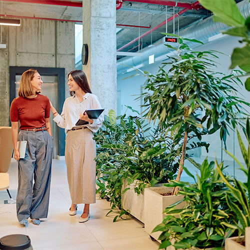 オフィスやホテルのロビー、商業施設のディスプレイ、美容・飲食業界の店舗空間、マンションのロビーなど、さまざまな空間に花と緑の力を注ぎ込み、心を豊かにするデザインをつくり上げています。